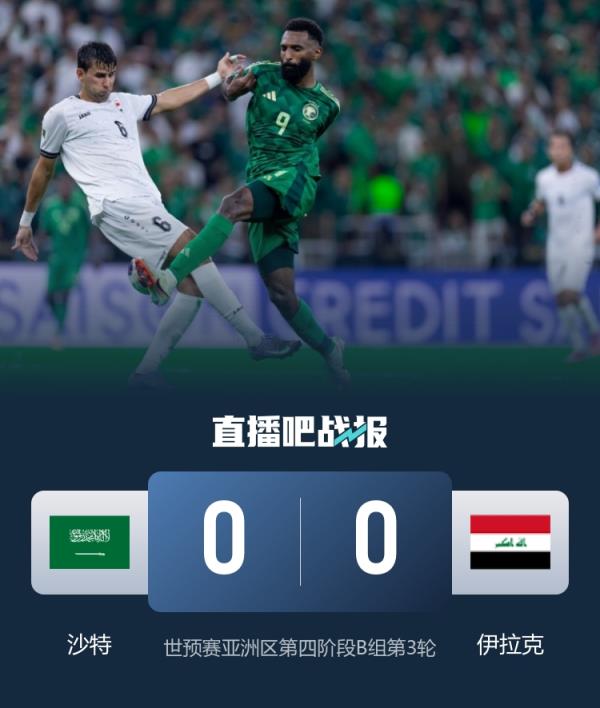 世预赛亚洲区第四阶段B组第3轮,沙特0-0战平伊拉克,晋级2026年世界杯正赛。